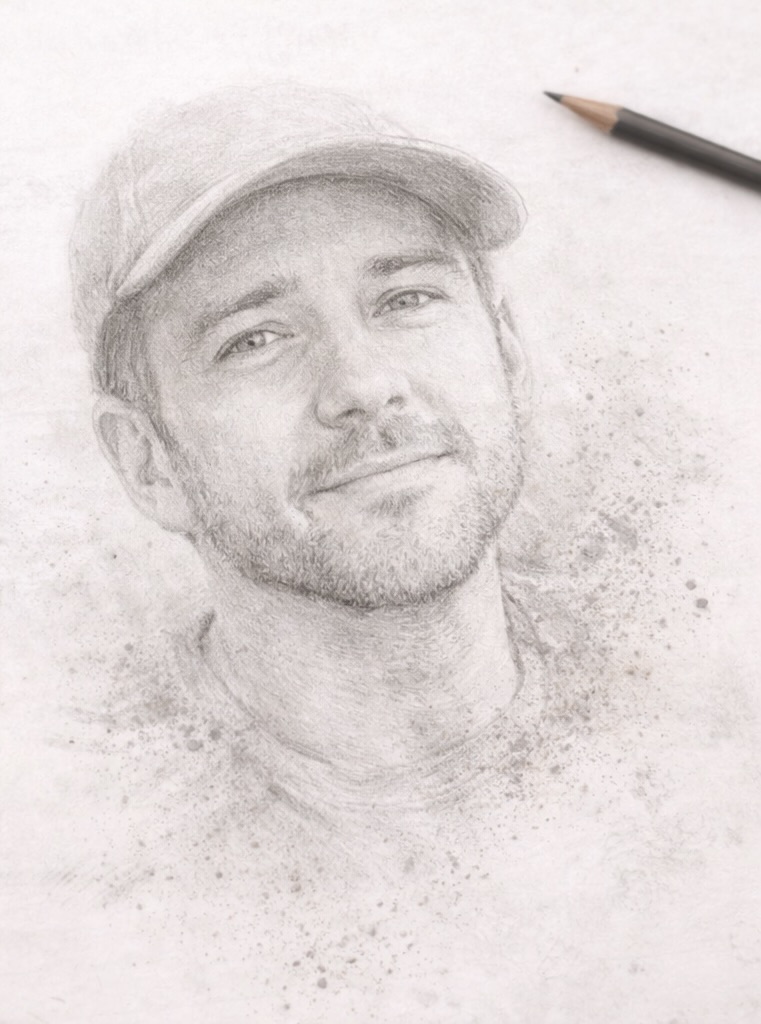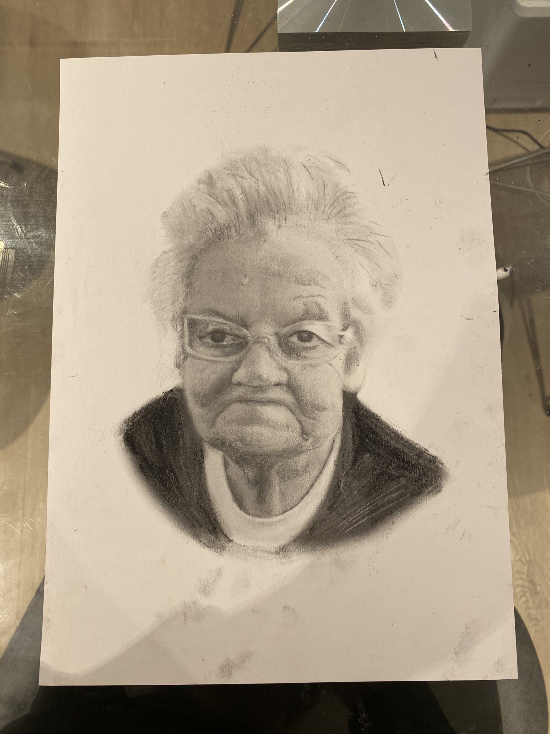 "Jessica, thank you so much for the most amazing portrait of my late grandfather. Jessica captures so much, not only can she draw as if it were the exact picture, she also captures the energy and character of the person. My grandfather was such a cheeky, chatty, warm soul and I can really feel his warmth when I look at Jessica’s portrait of him. We really can’t thank you enough. You’re incredibly talented. Highly recommend Jessica to anyone who is looking for a profound and beautiful memorial for their loved one."